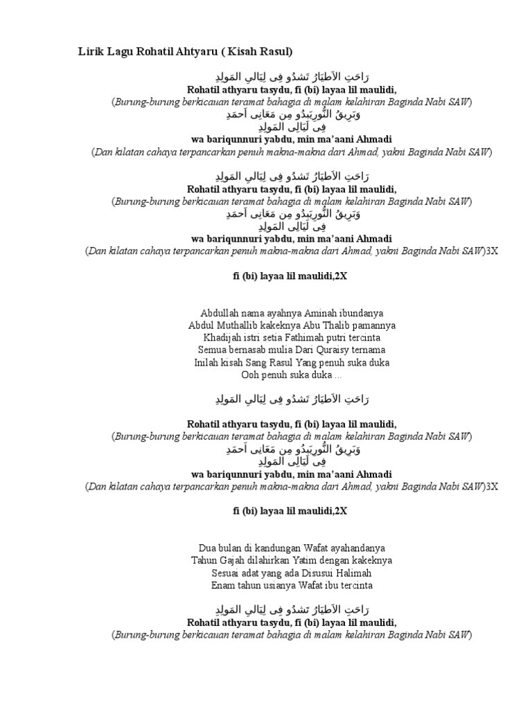 Teks Lirik Rohatil Athyaru Tasydu (Kisah Nyata Rasul) – Arab dan …