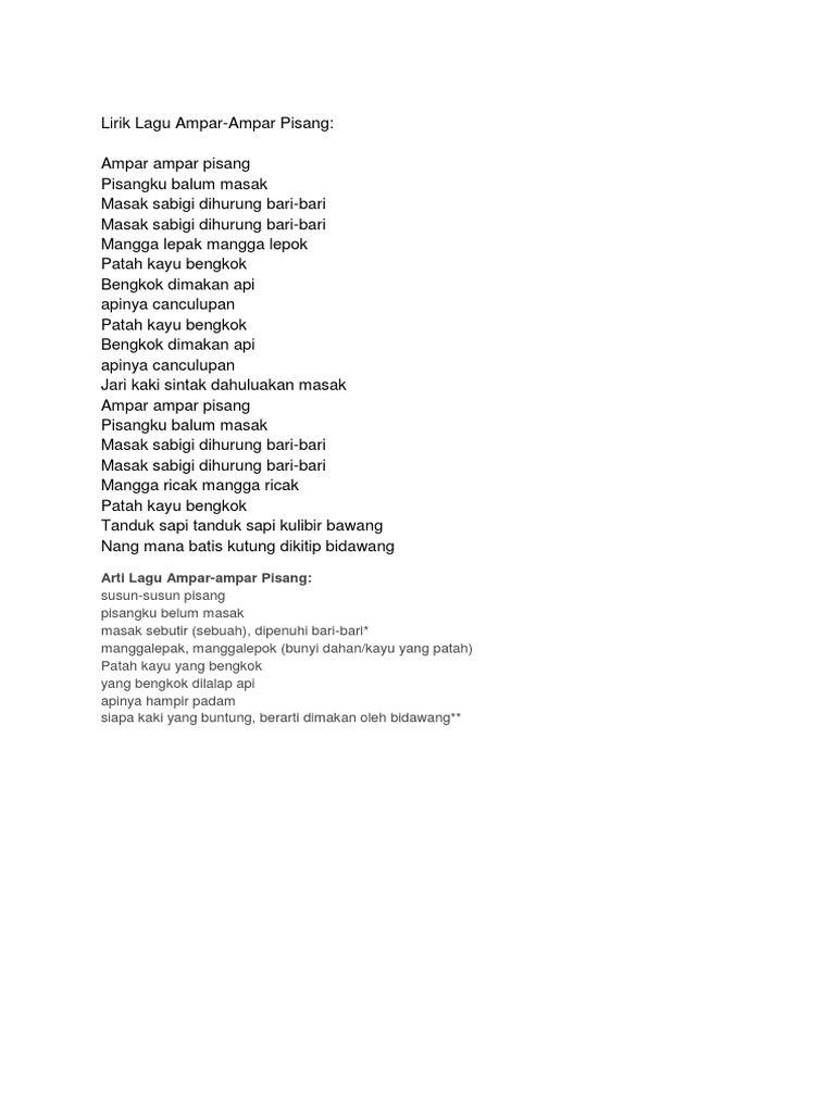 Lirik Lagu Daerah Ampar Ampar Pisang Lengkap