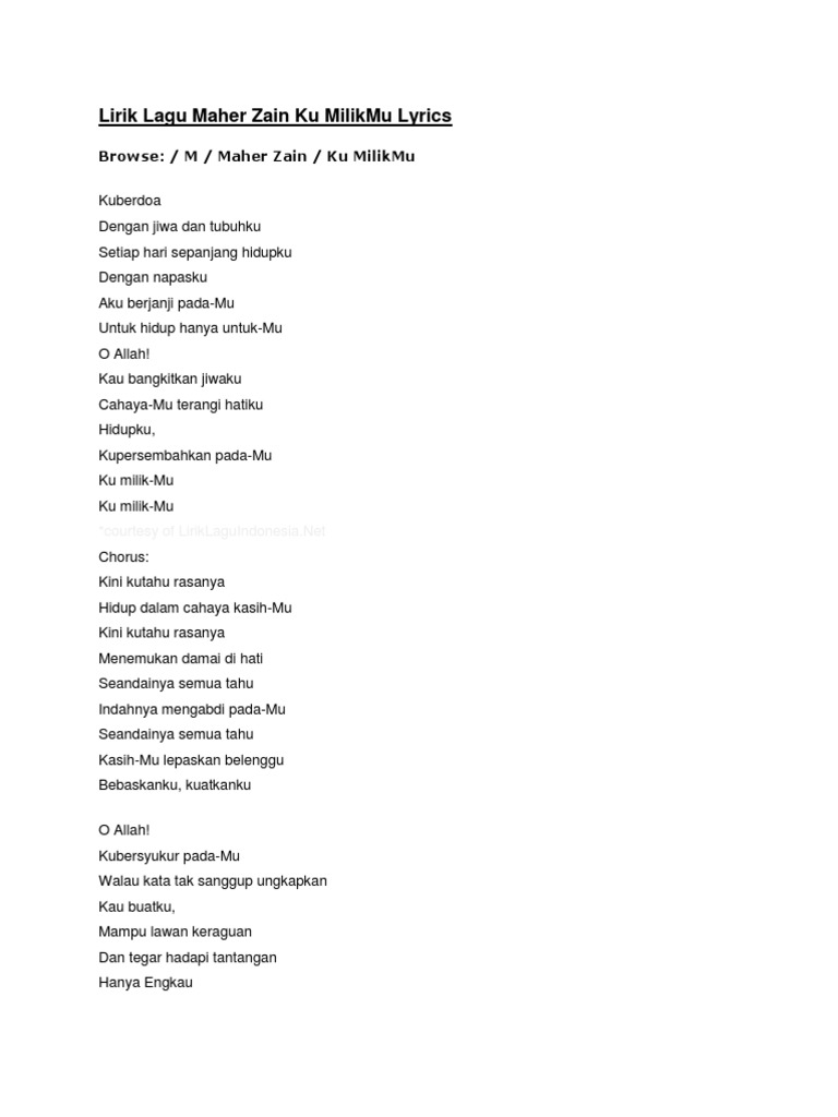 Lirik Lagu Maher Zain Ku MilikMu Lyrics | Religious Belief And …