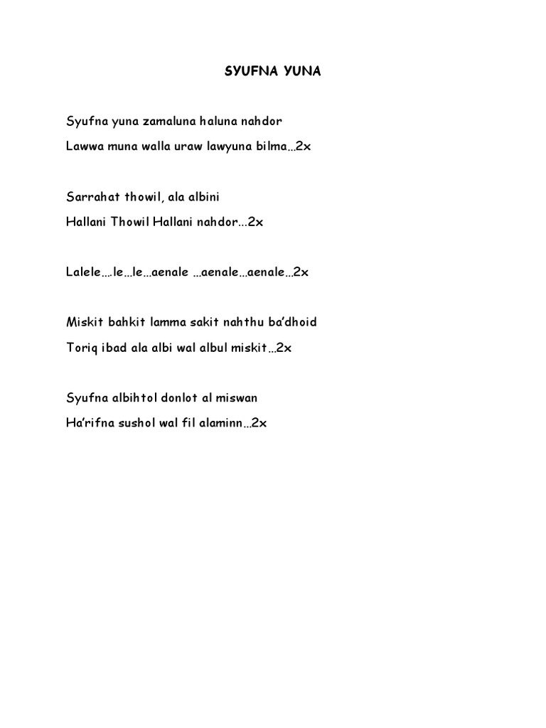 Teks Lagu Sufna Yuna Versi Indonesia - Berbagai Teks Penting