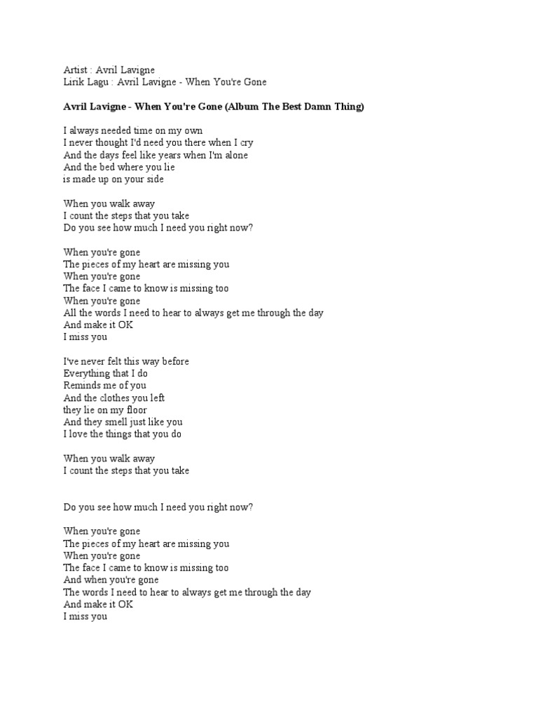 dewicrystal: Lirik lagu Avril Lavigne - When You’re Gone