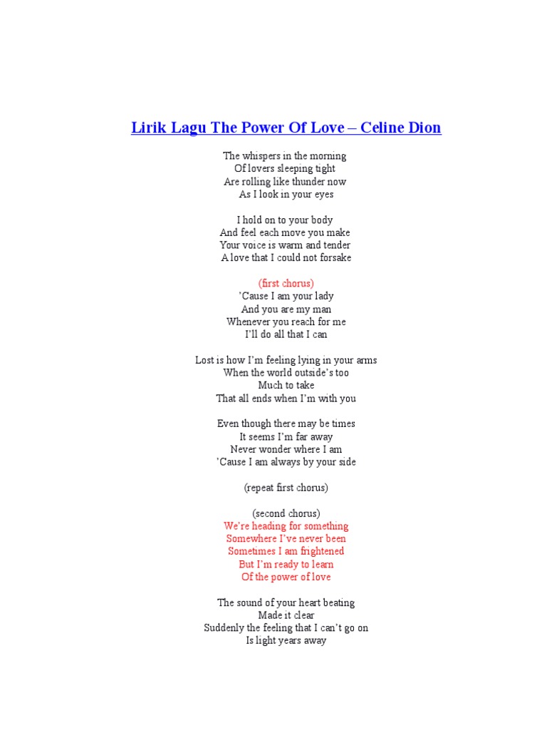 Lirik Lagu dan Terjemahan Celine Dion – The Power of Love, Lengkap …