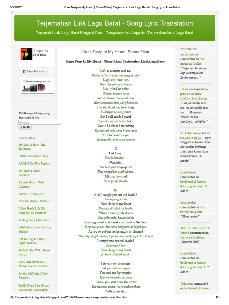Knee Deep in My Heart _ Shane Filan _ Terjemahan Lirik Lagu Barat …