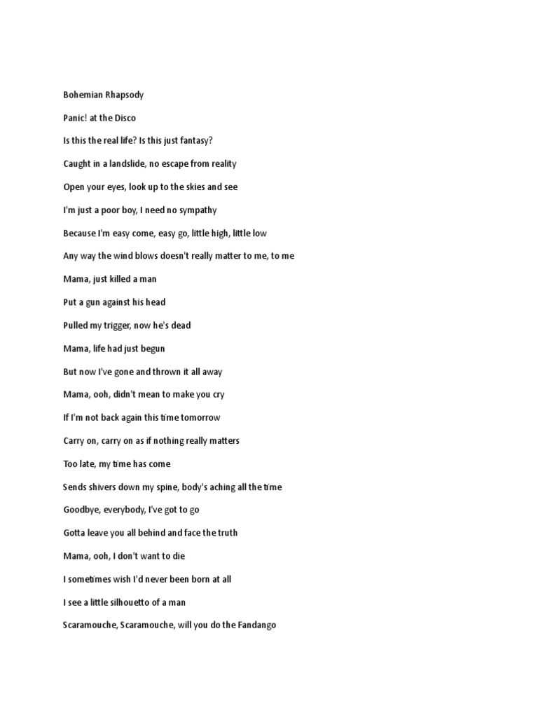Lirik Lagu - Bohemian Rhapsody - Queen - Wattpad
