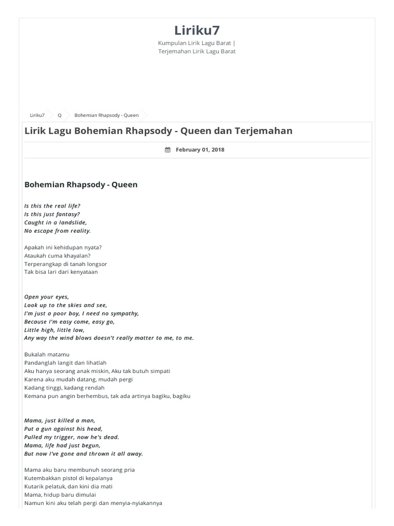 Terjemahan Lagu Queen - Bohemian Rhapsody (Bahasa Indonesia …