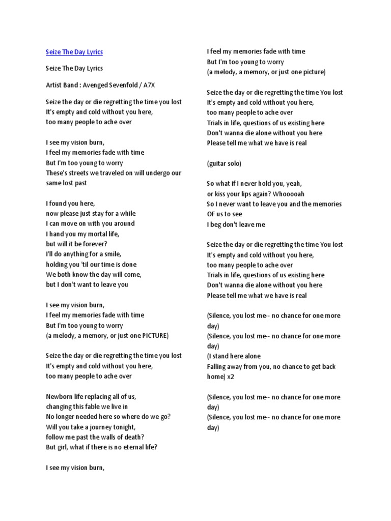 Lirik lagu - Seize The Day - Avenged Sevenfold - Wattpad