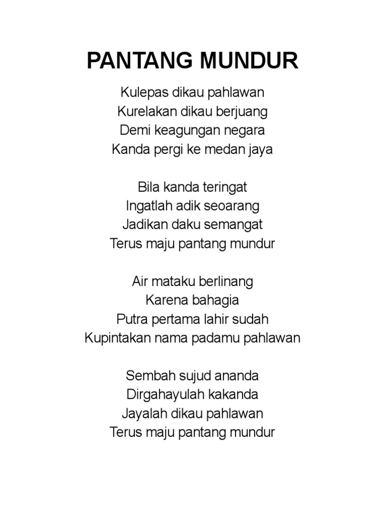 lirik lagu Wajib Nasional Indonesia - 33.PANTANG MUNDUR - Wattpad