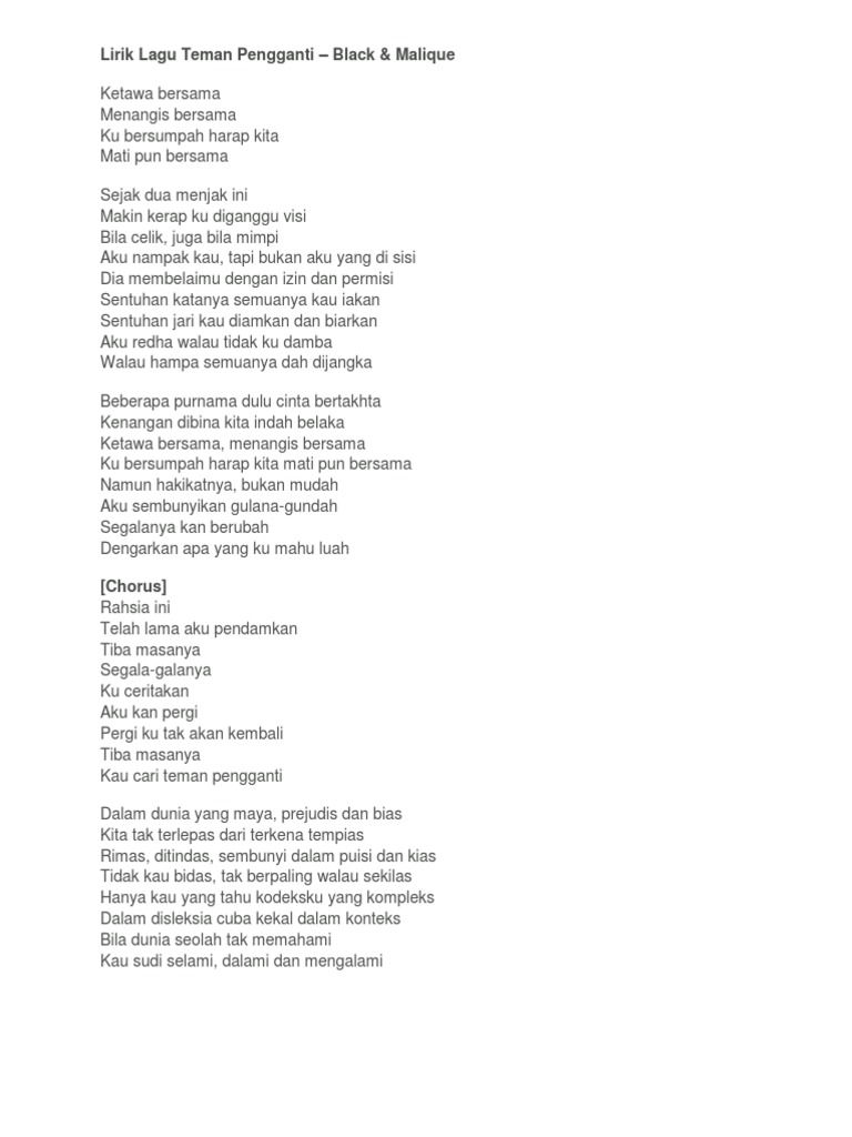 Lirik Lagu Teman Pengganti Black feat Malique