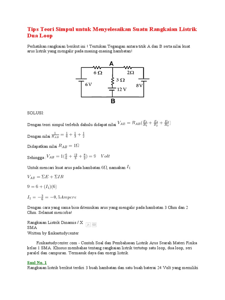 analisa loop, dua loop dua sumber tegangan, bank soal un fisika …