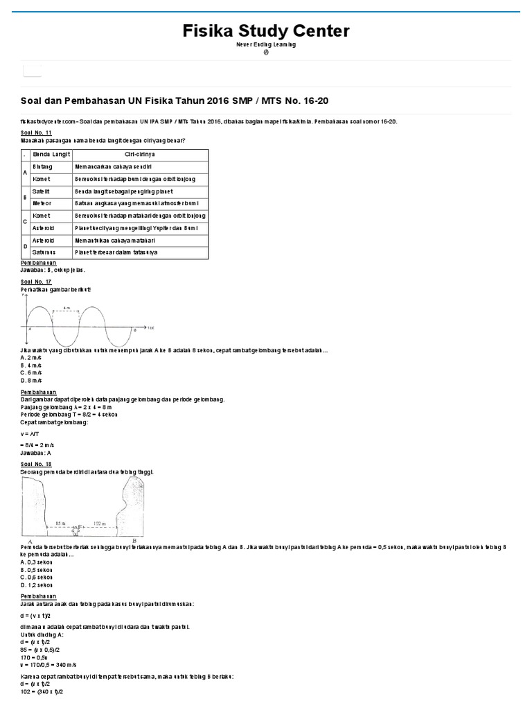 Soal Dan Pembahasan UN Fisika Tahun 2016 SMP _ MTS No. 16-20