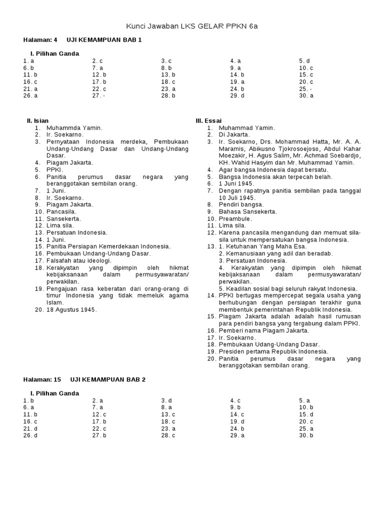 Kunci Jawaban LKS GELAR Pkn Kelas 6a