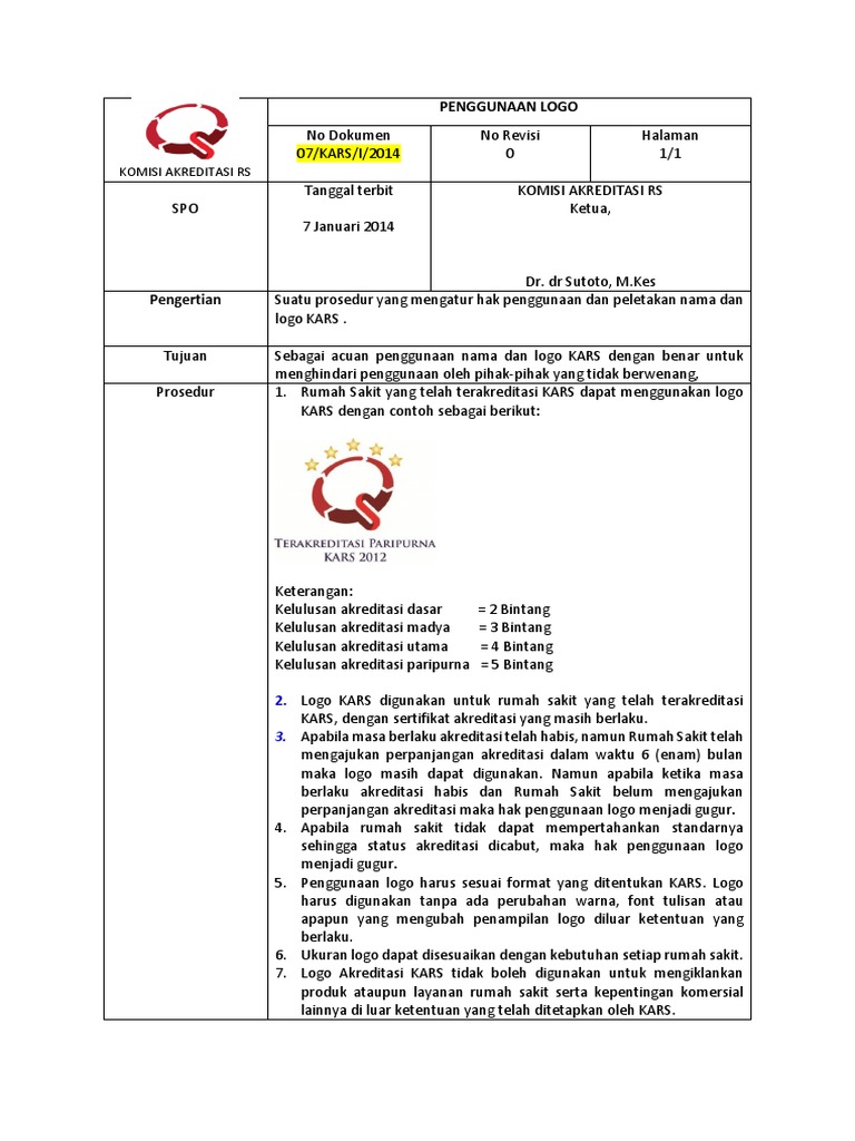 Ketua Eksekutif KARS (Komisi Akreditasi Rumah Sakit Seluruh …