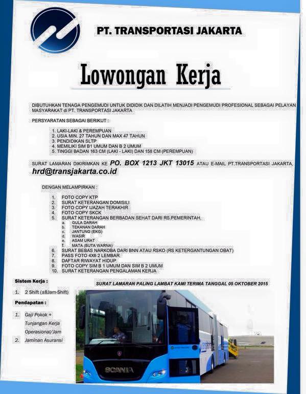 Lowongan Kerja Busway TransJakarta Minimal SMP SMA Tahun 2016 - REKRUTMEN LOWONGAN KERJA BULAN JANUARI 2021