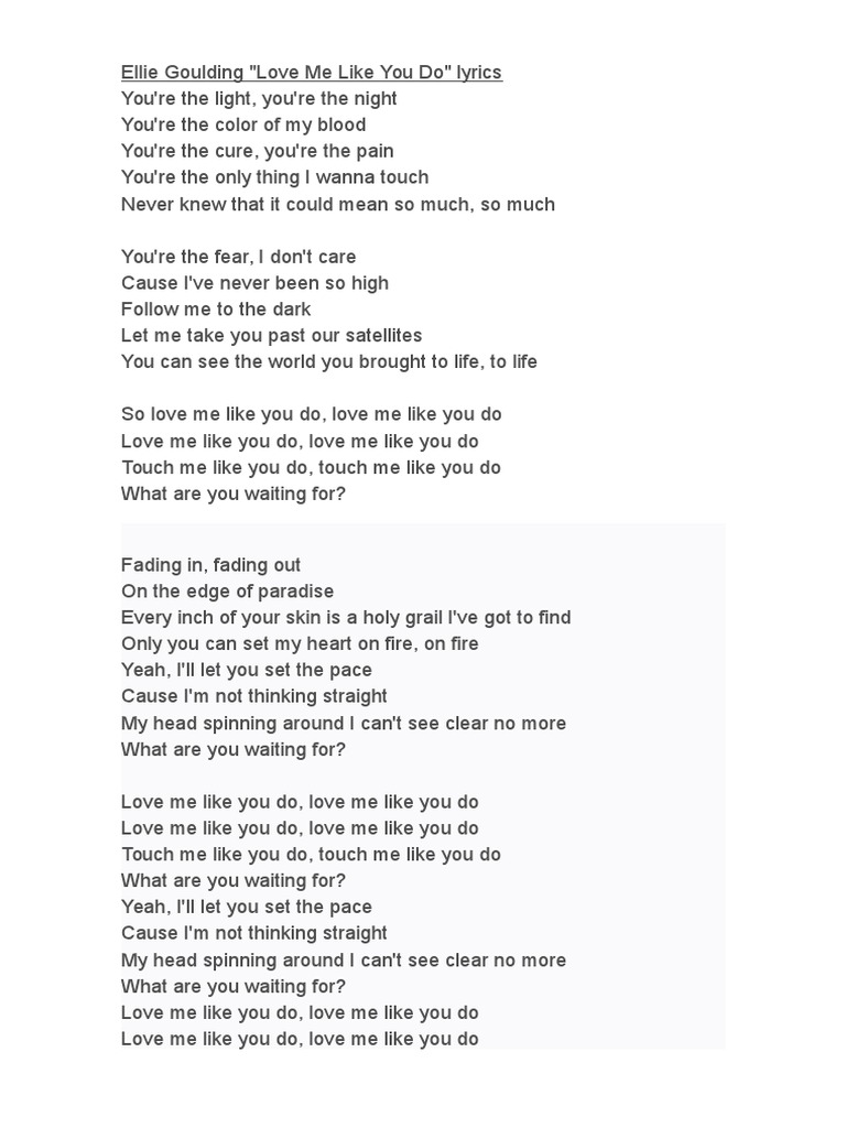 Ellie Goulding - Love me like you do lyrics | Love me like, Grey …