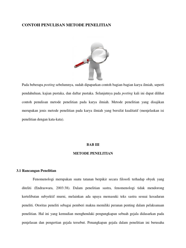 7+ Contoh Metode Penelitian Karya Ilmiah, Makalah, Skripsi (Lengkap)