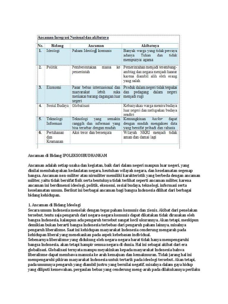 DOC) MAKALAH STRATEGI DAN UPAYA DALAM MENGATASI ANCAMAN INTEGRASI NASIONAL | sesmikha datryliana - Academia.edu