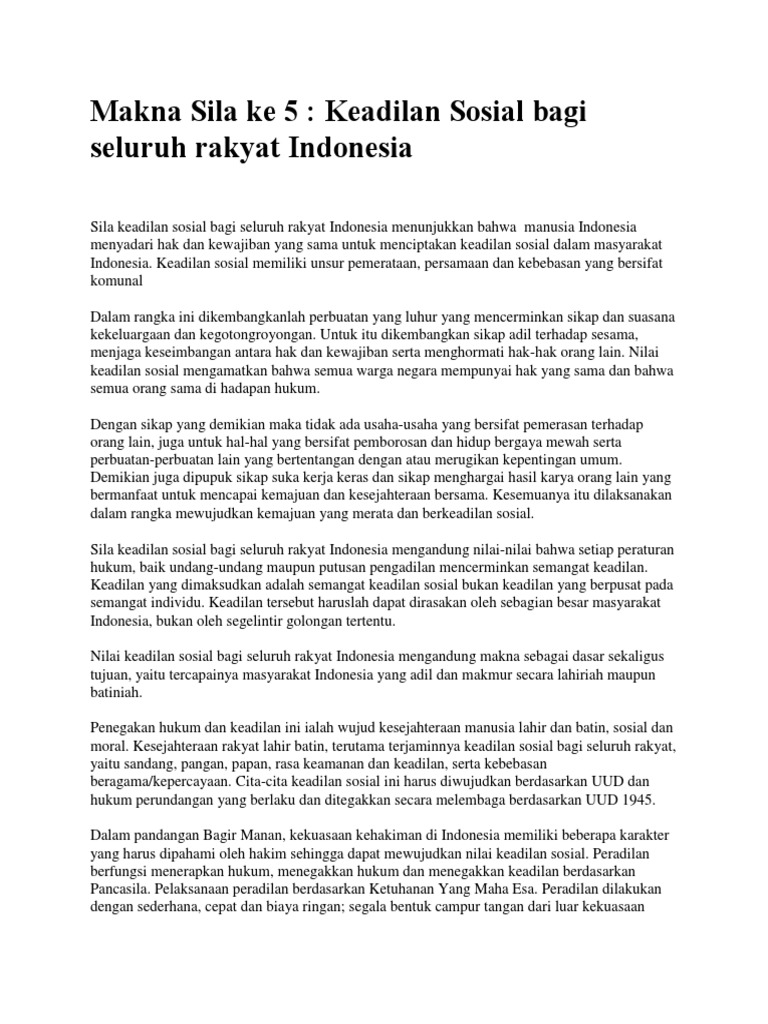 DOC) PEMBAHASAN TENTANG MAKNA SILA KE-5 PANCASILA | Siskha Loneliness - Academia.edu