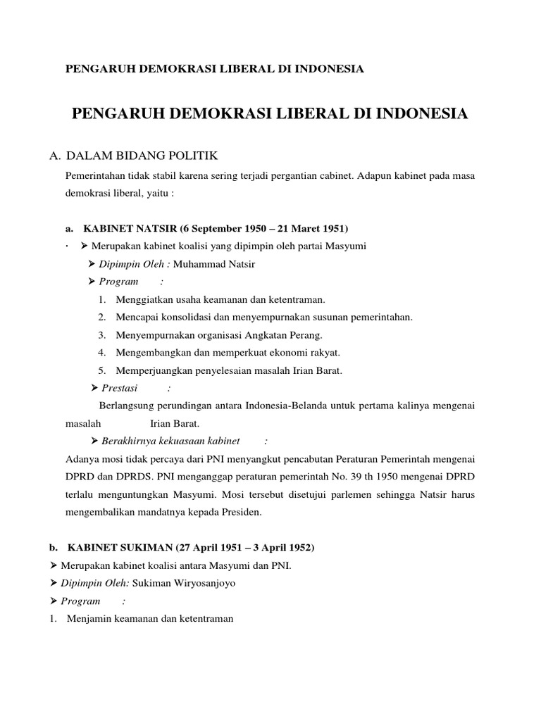 DOC) Kabinet pada Masa Demokrasi Liberal | Niken Yulianti - Academia.edu
