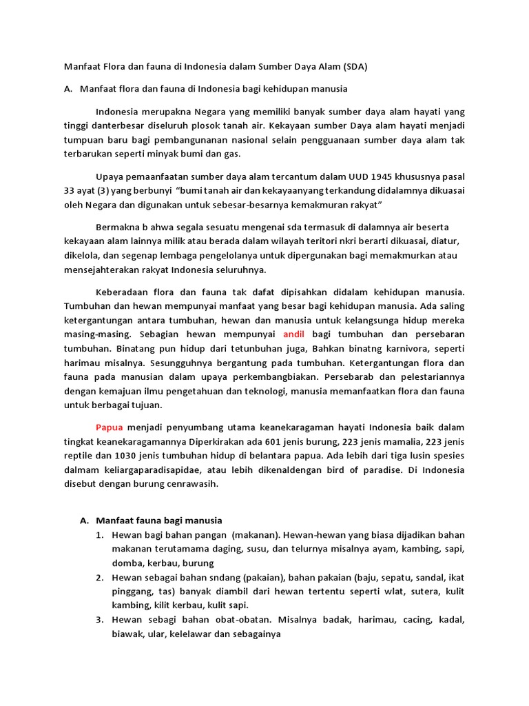 Manfaat Flora Dan Fauna Di Indonesia Dalam Sumber Daya Alam (Autosaved)