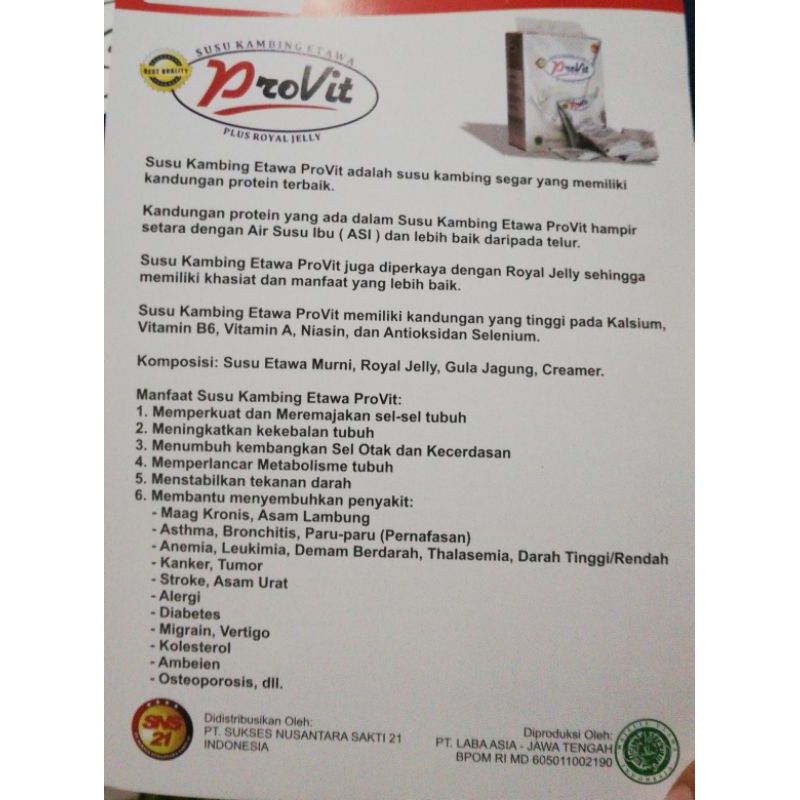 Manfaat susu provit - Toko herbal sns21 | Facebook