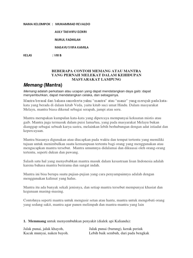 Memang (Mantra): Beberapa Contoh Memang Atau Mantra Yang …
