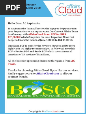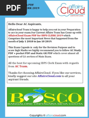 AC Exam PDF - IBPS Clerk 2019 by AffairsCloud.pdf | Reserve Bank Of India | Asian Development Bank