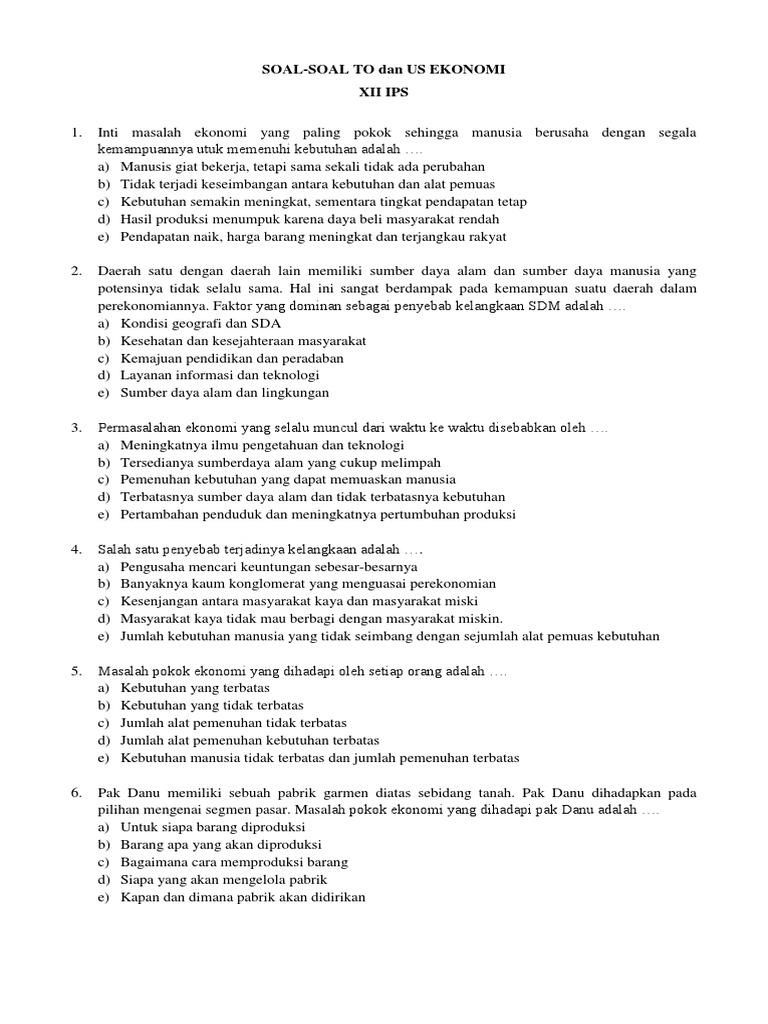 Soal Ekonomi : Masalah Pokok Ekonomi Dan Kunci Jawaban Lengkap …