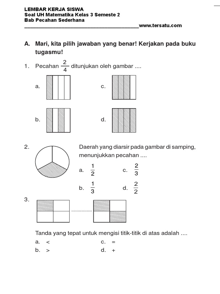 Soal Uh Matematika Kelas 3 Bab Pecahan Sederhana Semester 2