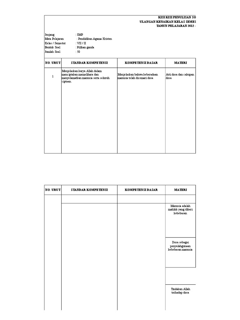 Kisi Kisi Ukk Agama Kristen Kelas 7
