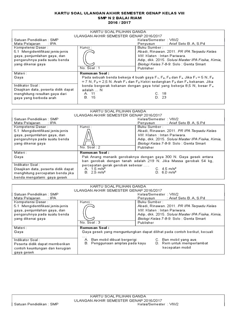 Kartu Soal Ulangan Akhir Semester Ipa