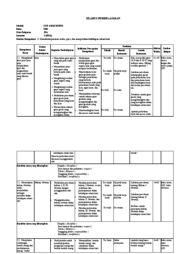 Silabus Ipa Smp Kelas 8 Semester 2-Berkarakter