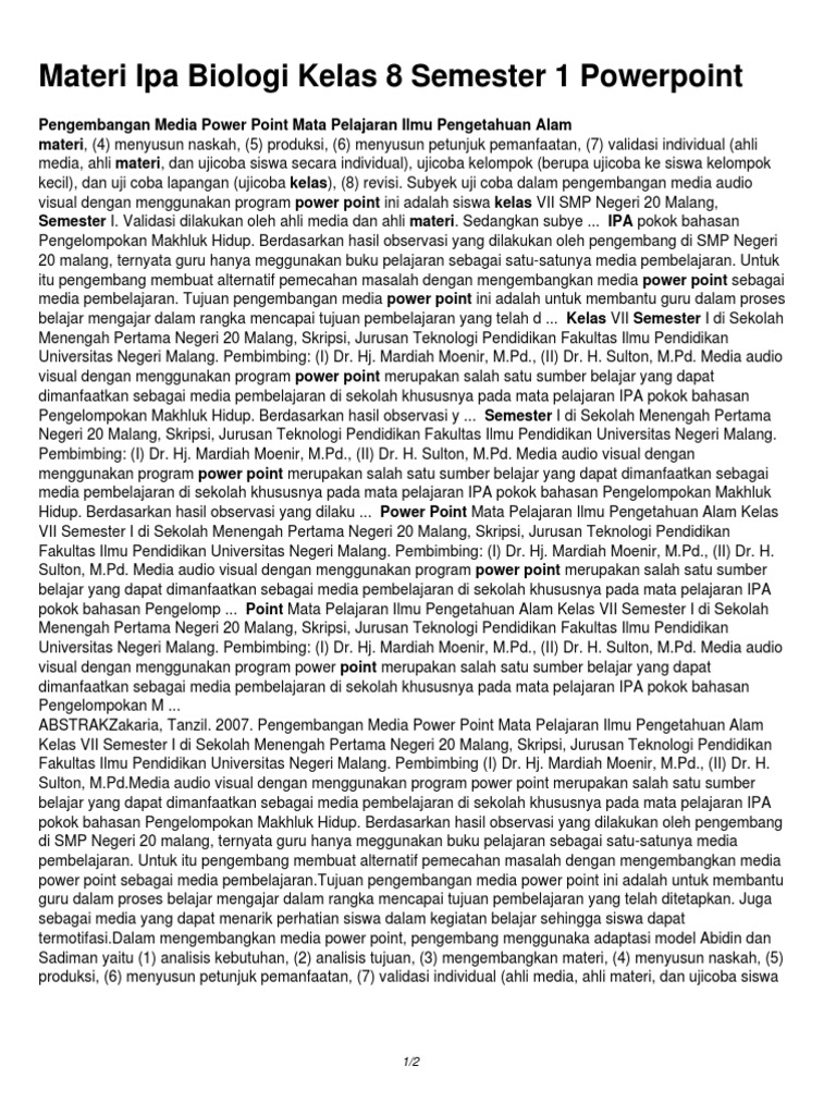 Materi Ipa Biologi Kelas 8 Semester 1 Powerpoint