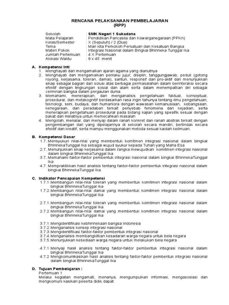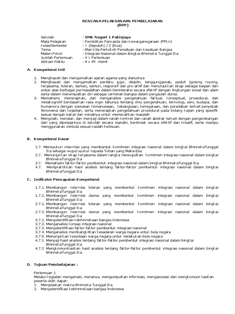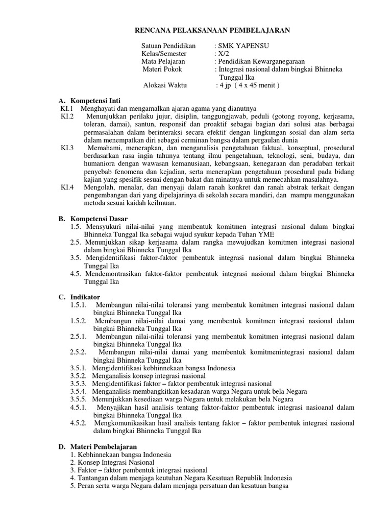 PDF) RPP 2 PKN KELAS X SEMESTER 2.pdf | Eli Priyatna - Academia.edu
