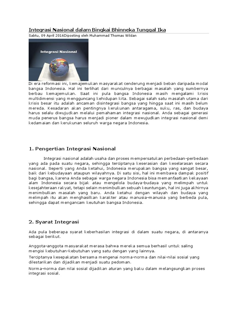 Makalah integrasi nasional dalam bingkai bhinneka tunggal ika - [DOCX Document]