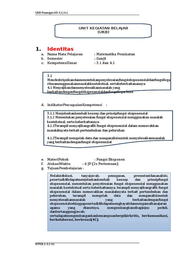 UKBM Matematika Peminatan SMA Kelas X Semester 1 - Fungsi Eksponen