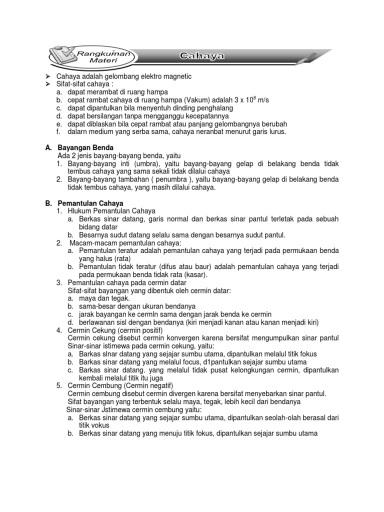 Rangkuman Materi IPA Kelas VIII-Smt2~Cahaya