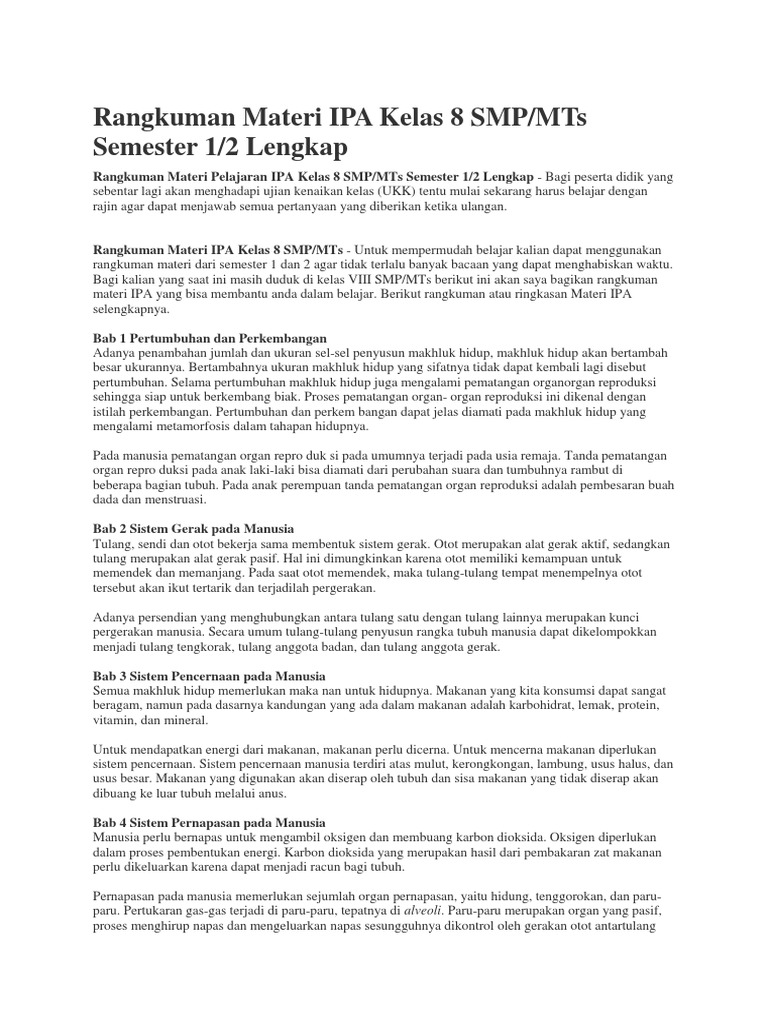 DOC) Rangkuman Materi IPA Kelas 8 Semester 2 | Diky Andriyansyah …