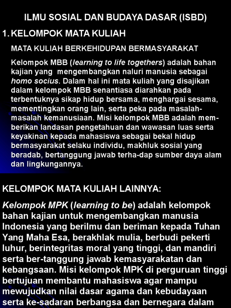 Ilmu Sosial Budaya Dasar) - .Memberikan pengetahuan dan wawasan …