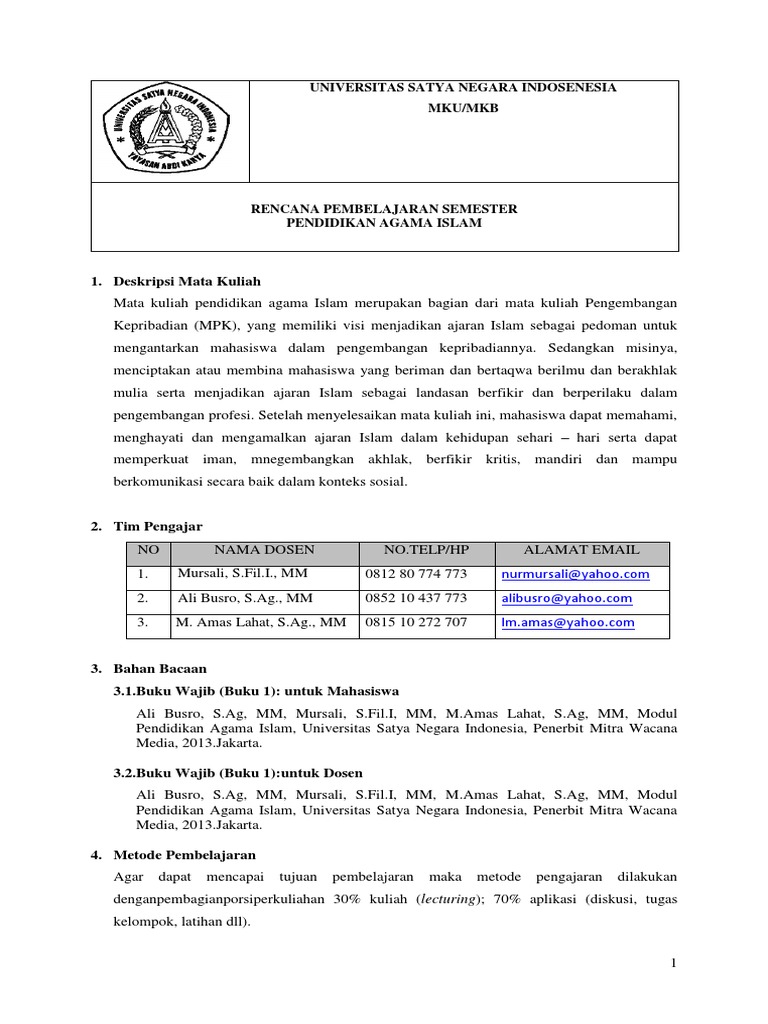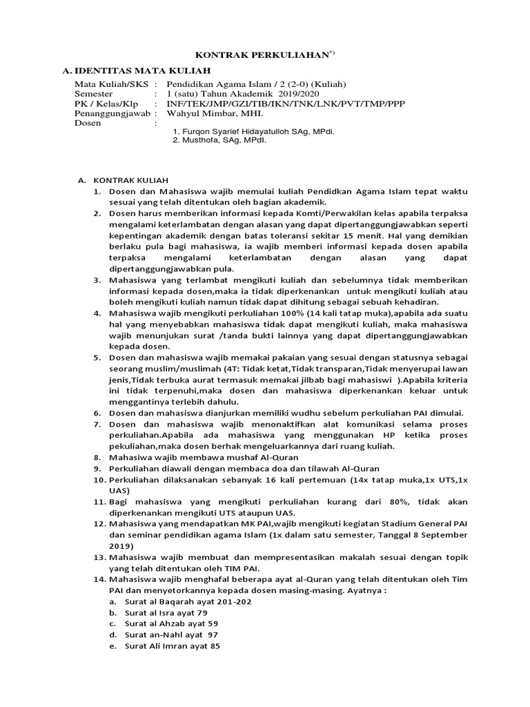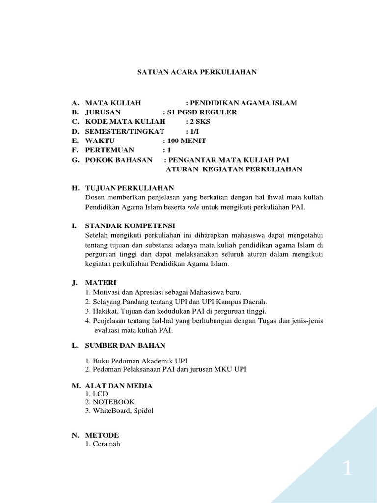DOC) SILABUS MATA KULIAH AGAMA ISLAM | Indra Nurul Hayat - Academia.edu