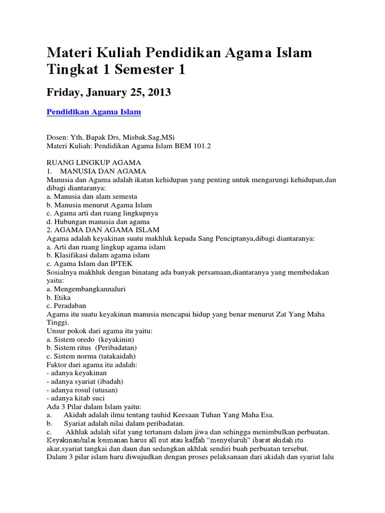 Materi Kuliah Pendidikan Agama Islam Tingkat 1 Semester 1