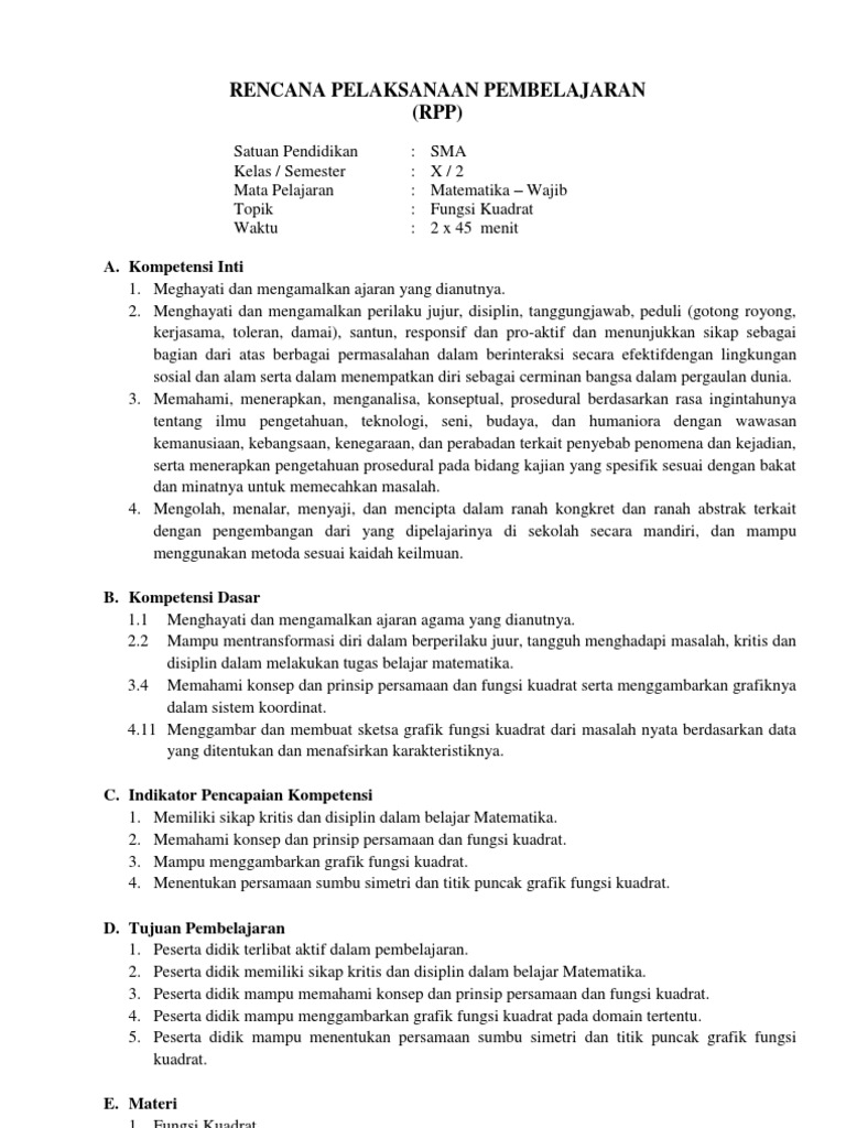 DOC) RPP PERSAMAAN DAN FUNGSI KUADRAT | rahmadi almuhklisan …