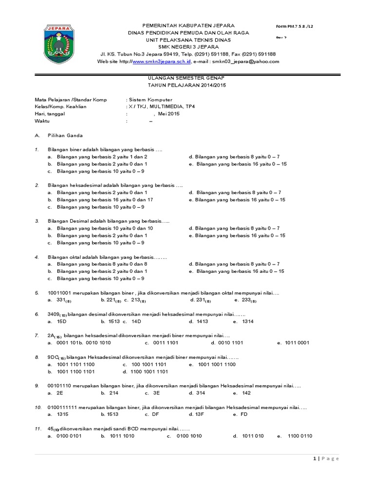 √ Contoh Soal Sistem Komputer Kelas 10 Semester 1 Kurikulum 2013 …