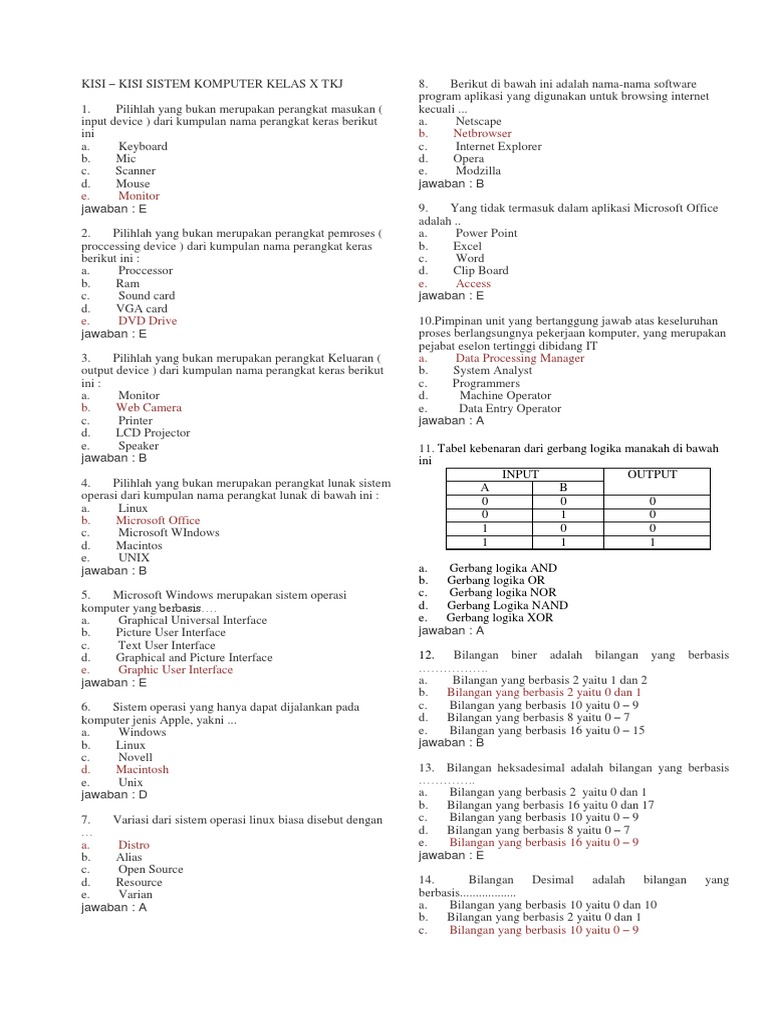 CONTOH SOAL SISTEM KOMPUTER KELAS X KURIKULUM 2013 SEMUA JURUSAN …