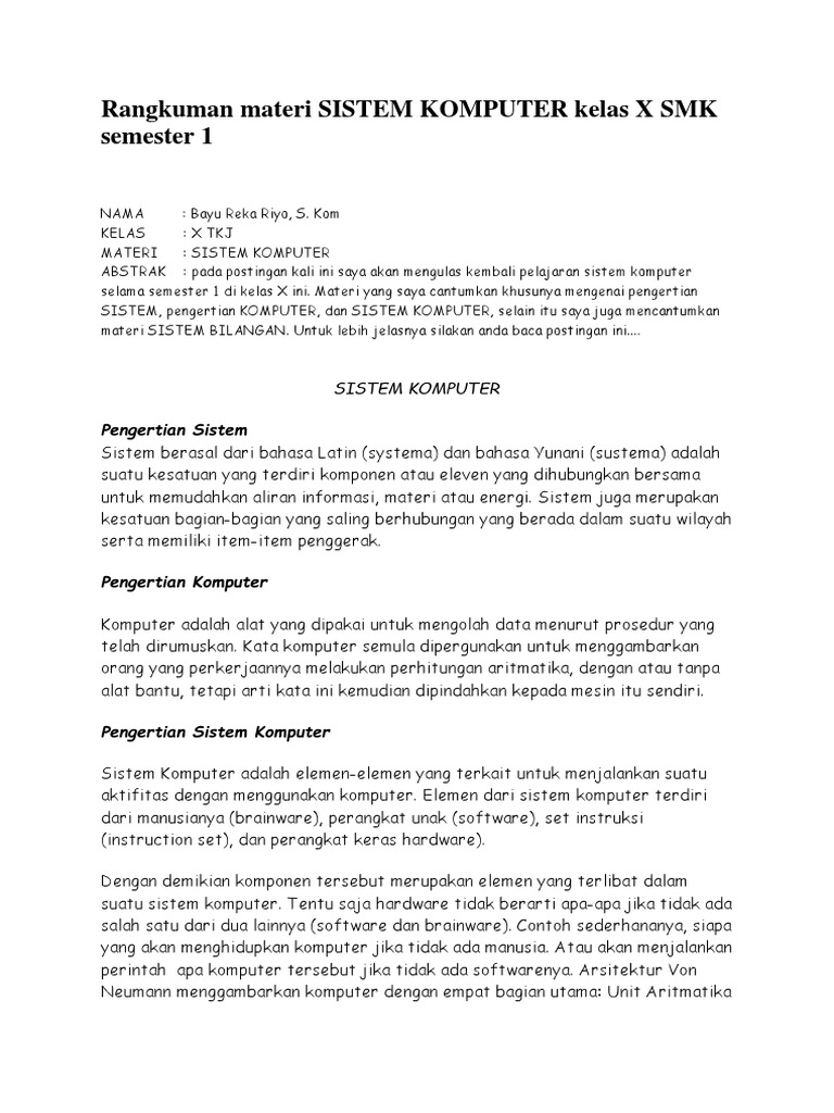 DOC) RANGKUMAN SISTEM KOMPUTER KELAS XI SEMESTER 1 | PK Tutorial …