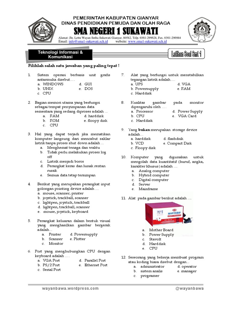 Soal Ulangan Tengah Semester TIK Kelas IX
