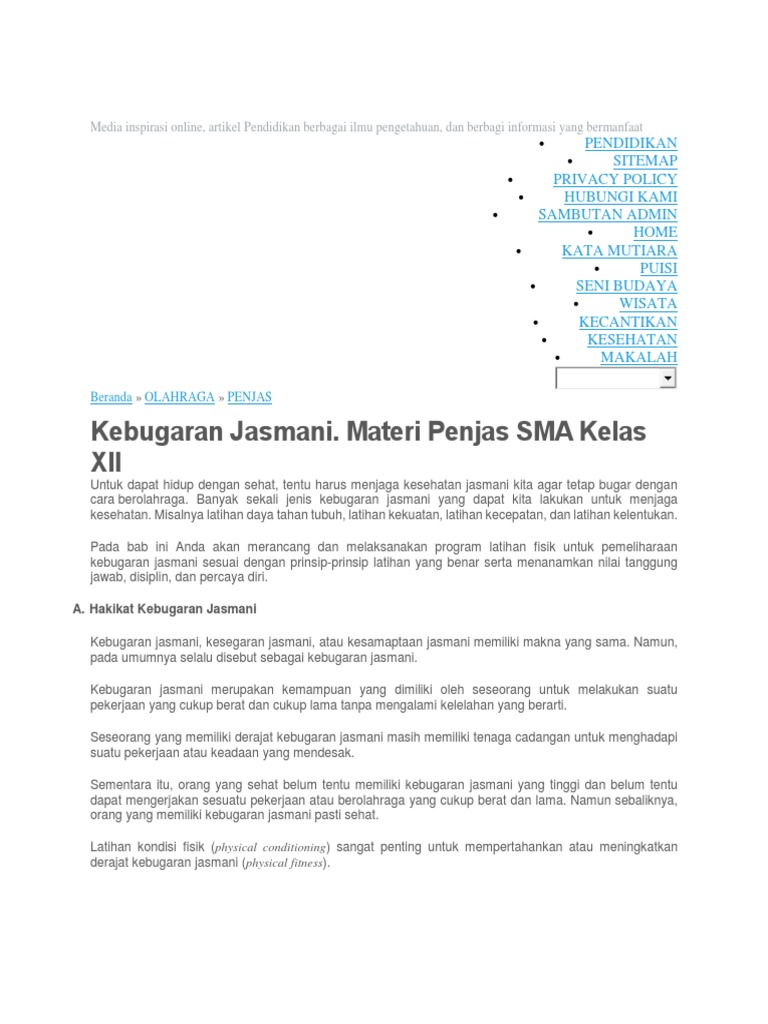 Kebugaran Jasmani. Materi Penjas SMA Kelas XII: Pintu Belajar …