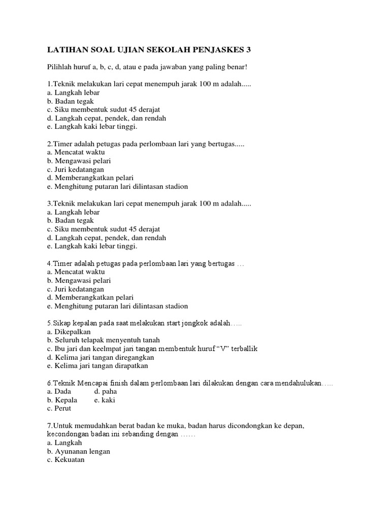 Kumpulan Soal Penjas 50 Soal Berserta Jawaban 2