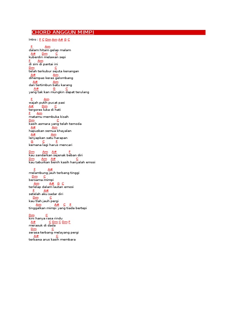 Lirik Lagu Anggun Mimpi Lyrics - [DOCX Document]