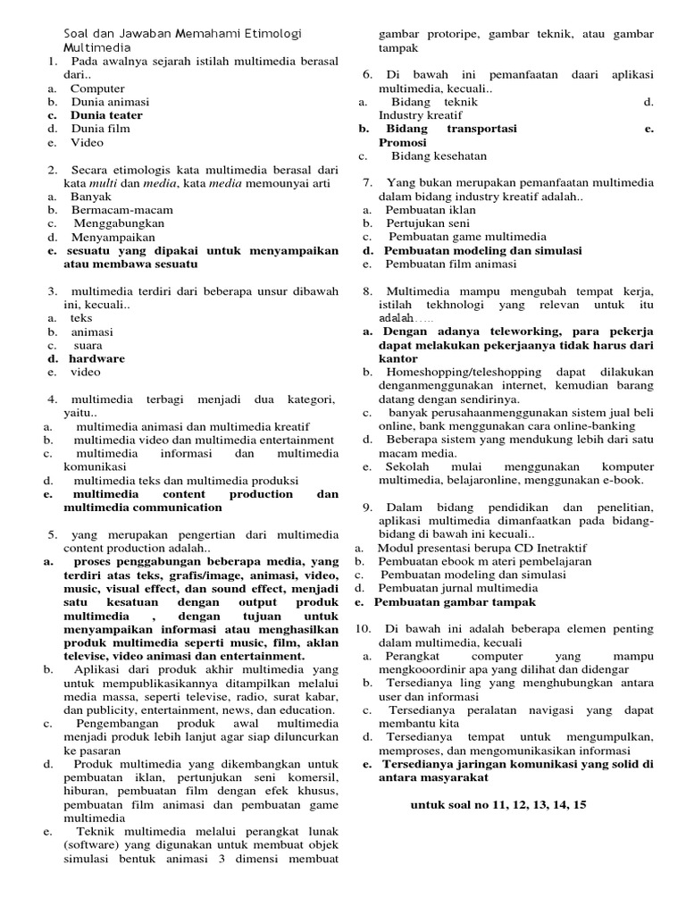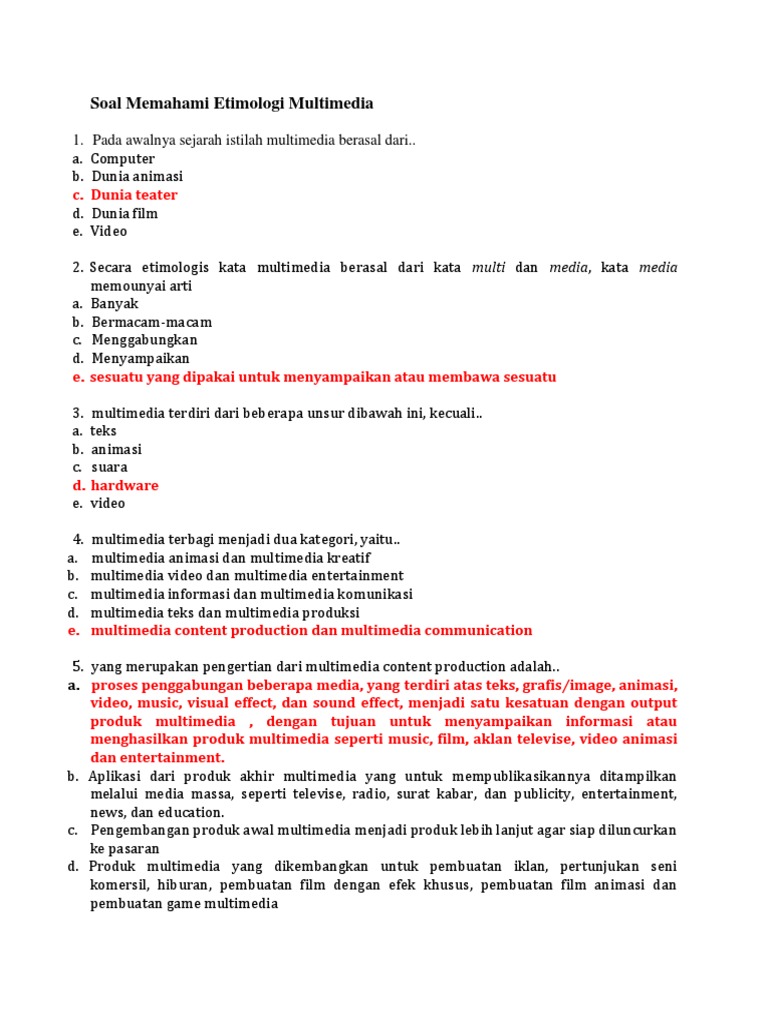 Soal Dan Jawaban Memahami Etimologi Multimedia