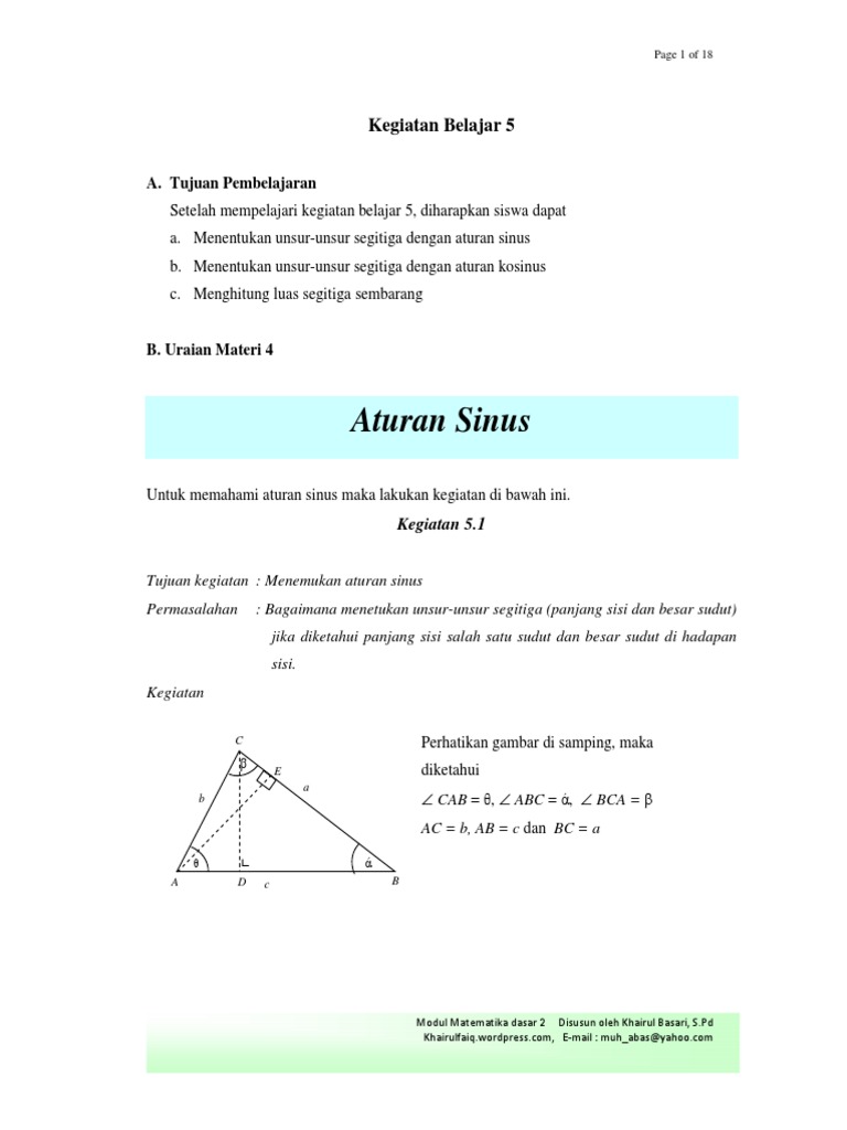 Contoh Soal Aturan Sinus, Cosinus Luas Segitiga Trigonometri